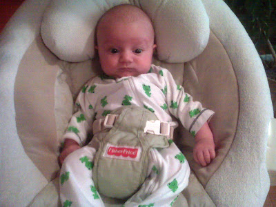 8 - He does famously with his 3 hour feeding, wake time, and naptime routine all day long! Which makes mommy's day much more predictable on getting this done.